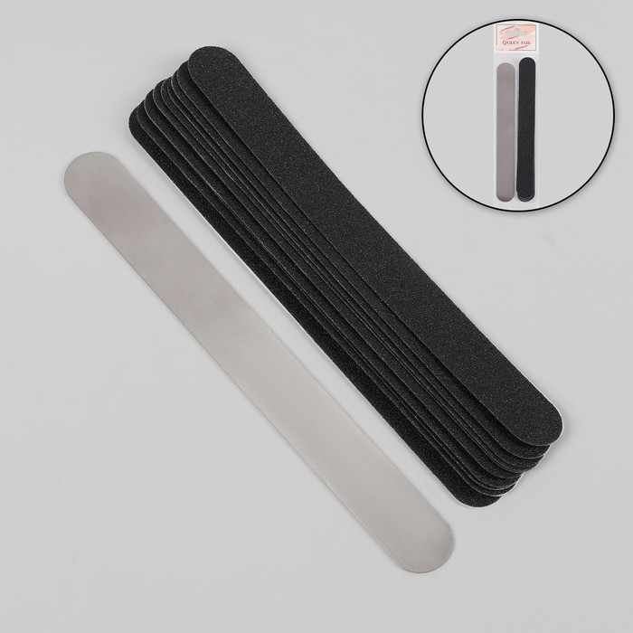 Основа и сменные файлы для пилки, 18 см, 10 шт, абразивность 80, цвет чёрный