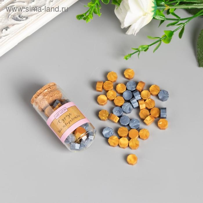 Сургуч в гранулах в баночке "Восьмигранник" золото и серебро 15 гр 6х3х3 см