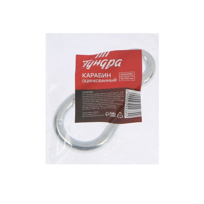 Карабин монтажный с фиксатором ТУНДРА krep, DIN5299D, 10х100 мм, оцинкованный, 1 шт.