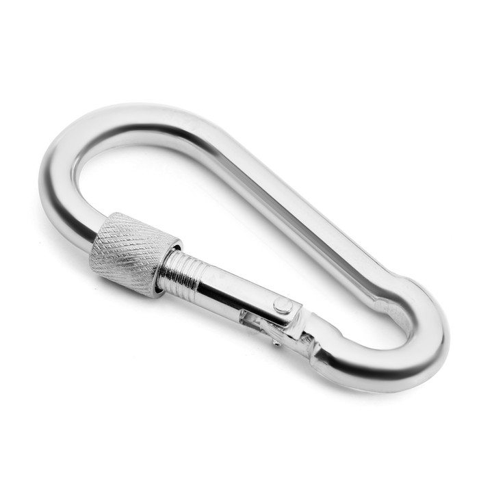 Карабин монтажный с фиксатором ТУНДРА krep, DIN5299D, 9х90 мм, оцинкованный, 1 шт.
