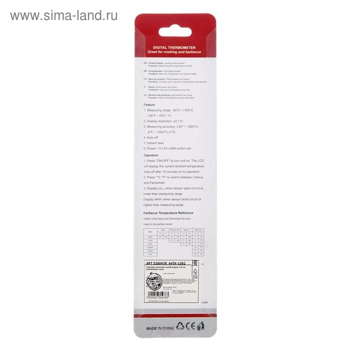 Термометр (термощуп) кухонный LTR-19, максимальная температура 300 °C, от LR44, серебристый