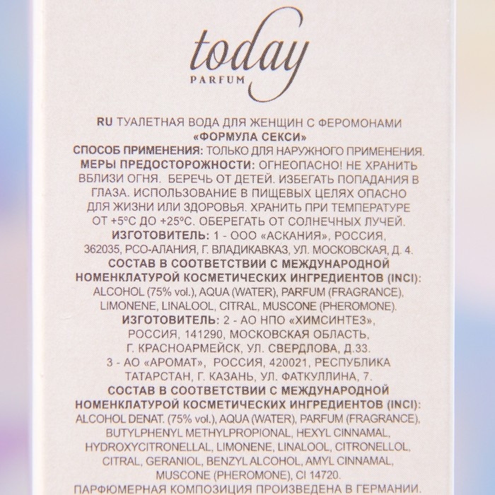 Уникальная формула с повышенным содержанием феромонов открывает тайные знаки вашей сексуальности и придаёт уверенности в себе.