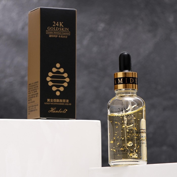 Сыворотка содержит полезные для кожи ингредиенты, в том числе ниацинамид и золото, которые бережно ухаживают за кожей, делая её мягкой, увлажнённой и шелковистой. Сыворотка выравнивает тон кожи и очищает её.