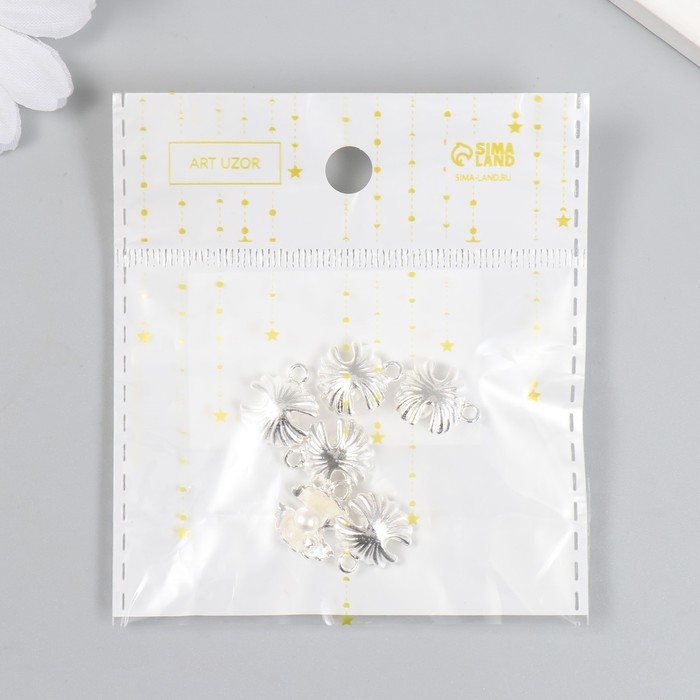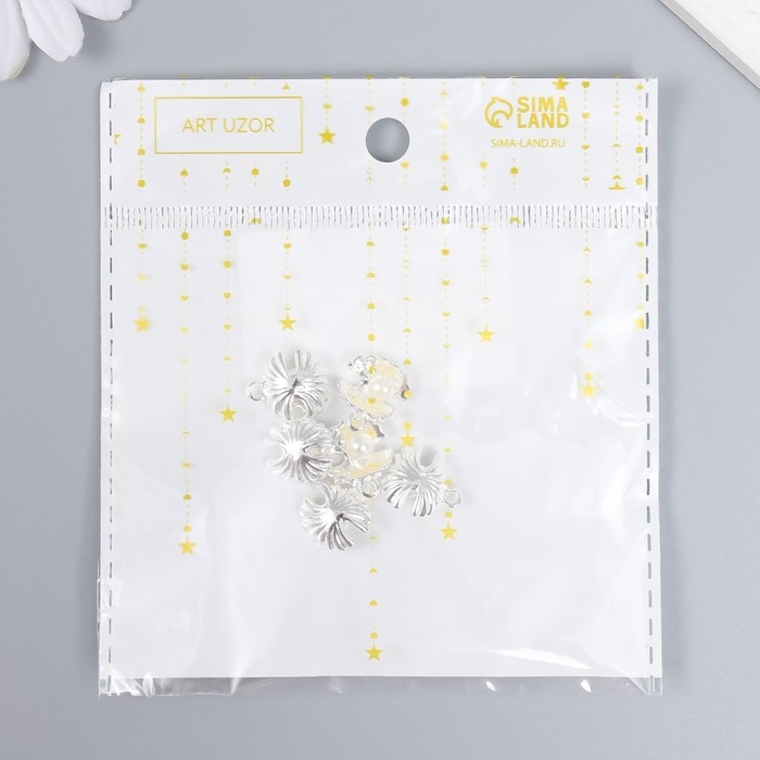 Декор для творчества металл "Жемчужина в ракушке" набор 6 шт 1,2х1,2х0,6 см