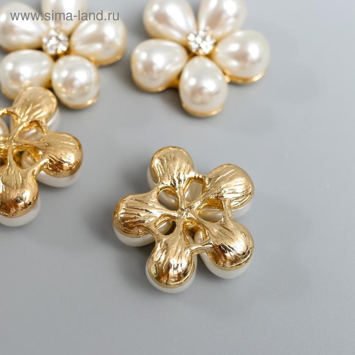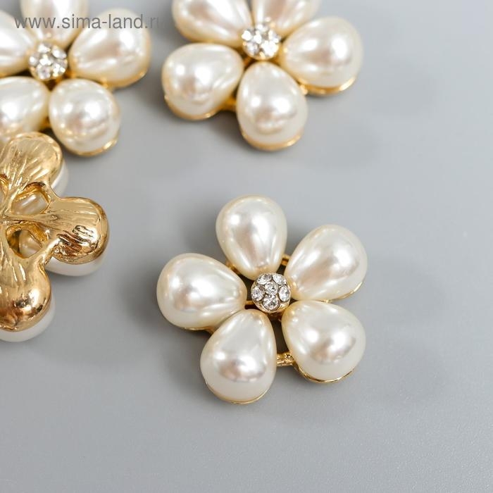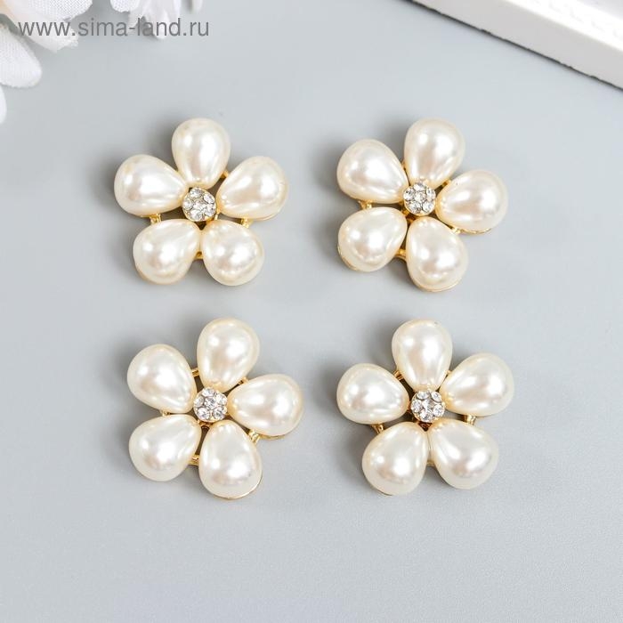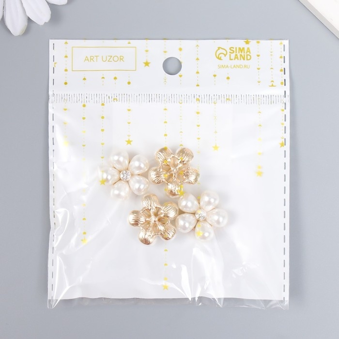 Декор для творчества металл "Ромашка из жемчуга" набор 4 шт 2,3х2,3 см