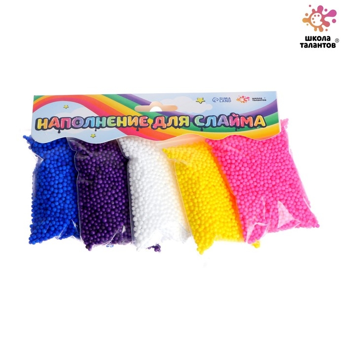 Наполнение для слаймов, пенопластовые шарики 5 цветов по 2 г