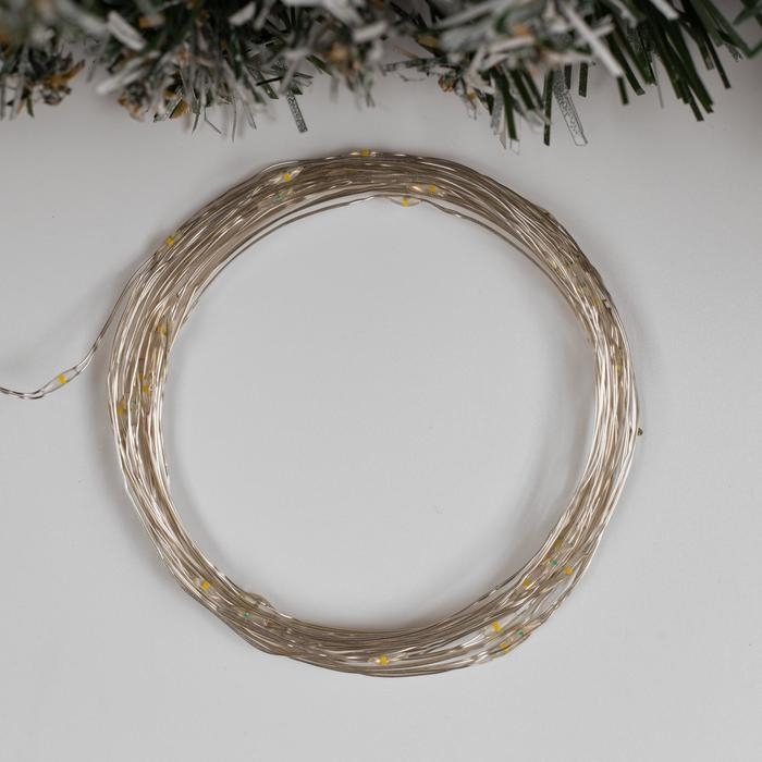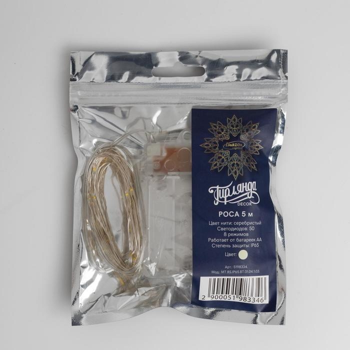 Гирлянда «Нить» 5 м роса, IP65, серебристая нить, 50 LED, 8 режимов, батарейки AAх3 (нет в комплекте), свечение тёплое белое