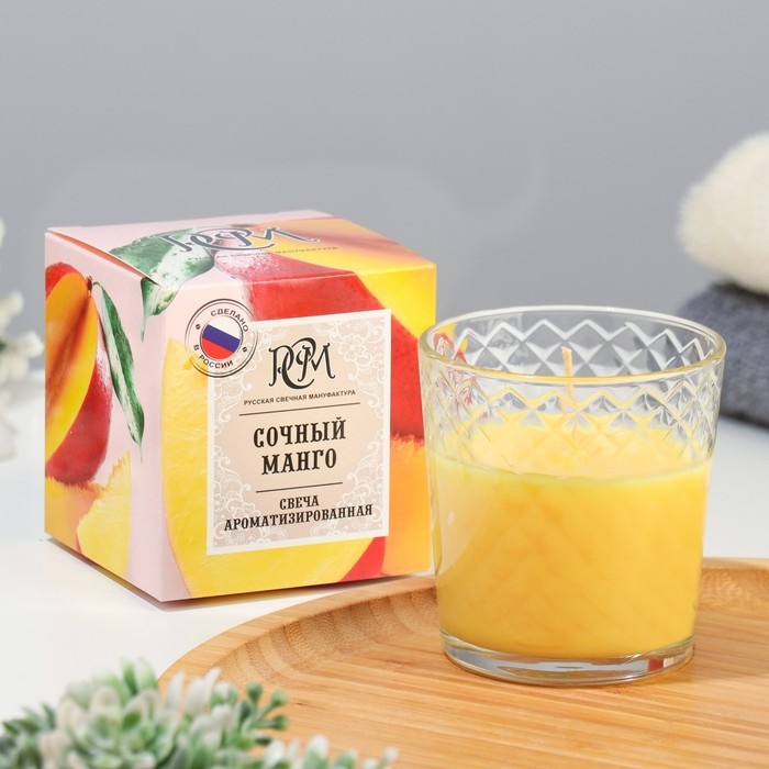 Свеча ароматическая в стакане "Сочный манго", подарочная упаковка, 8х8,5 см, 30 ч