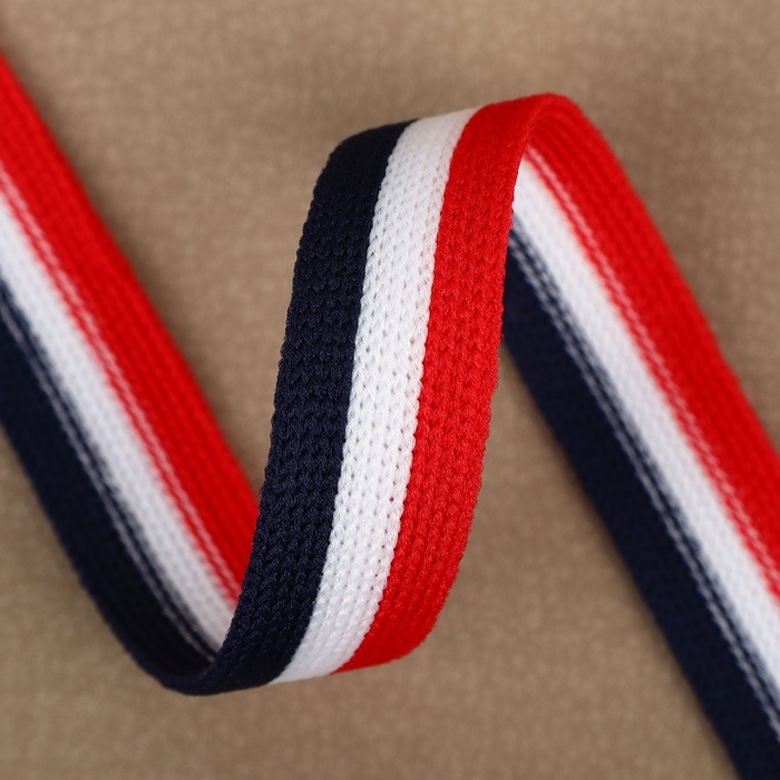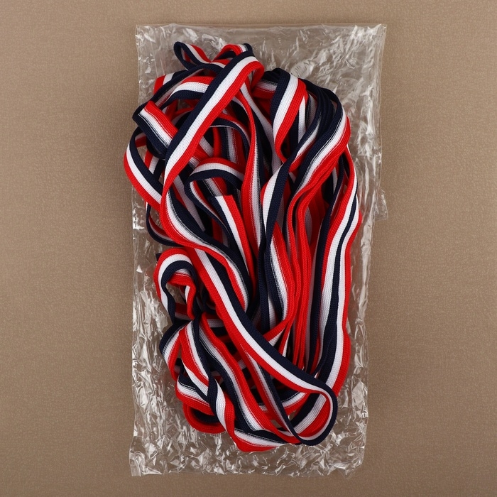 Тесьма трикотажная лампас 15 мм, 9,1 ± 0,5 м, цвет синий/белый/красный