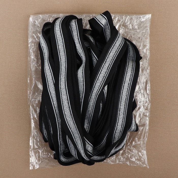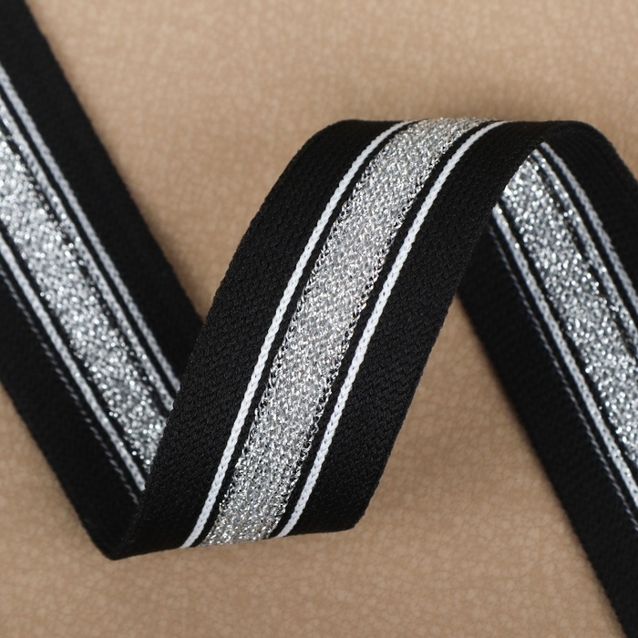 Тесьма трикотажная лампас 25 мм, 9 ± 0,5 м, цвет чёрный/серебряный