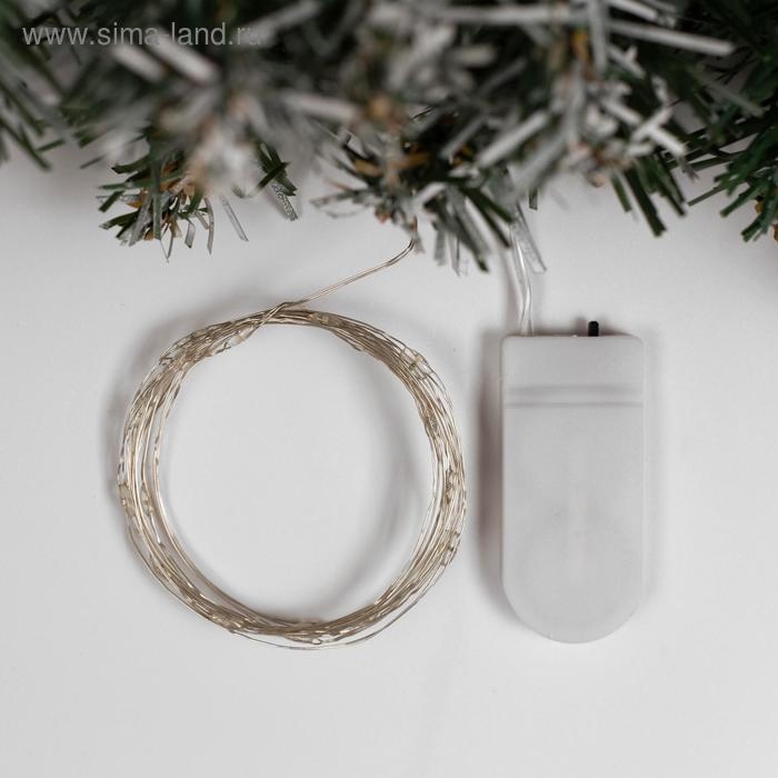 Гирлянда «Нить» 2 м роса, IP20, серебристая нить, 20 LED, батарейки CR2032х2 (в комплекте), свечение фиолетовое