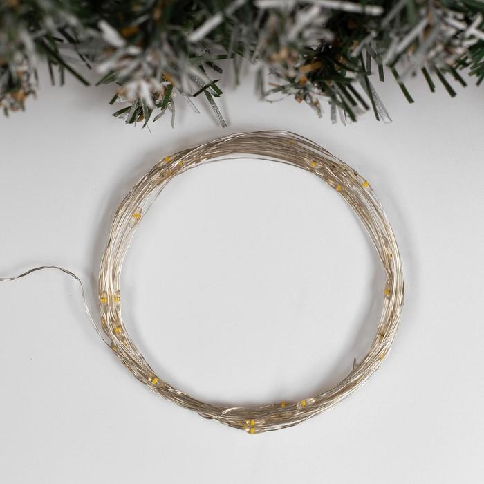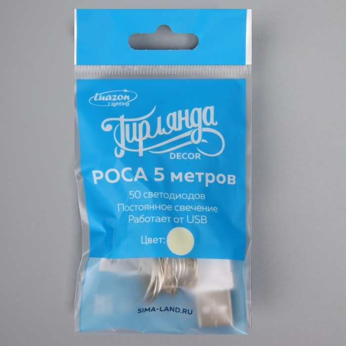 Гирлянда «Нить» 5 м роса, IP20, серебристая нить, 50 LED, свечение тёплое белое, USB
