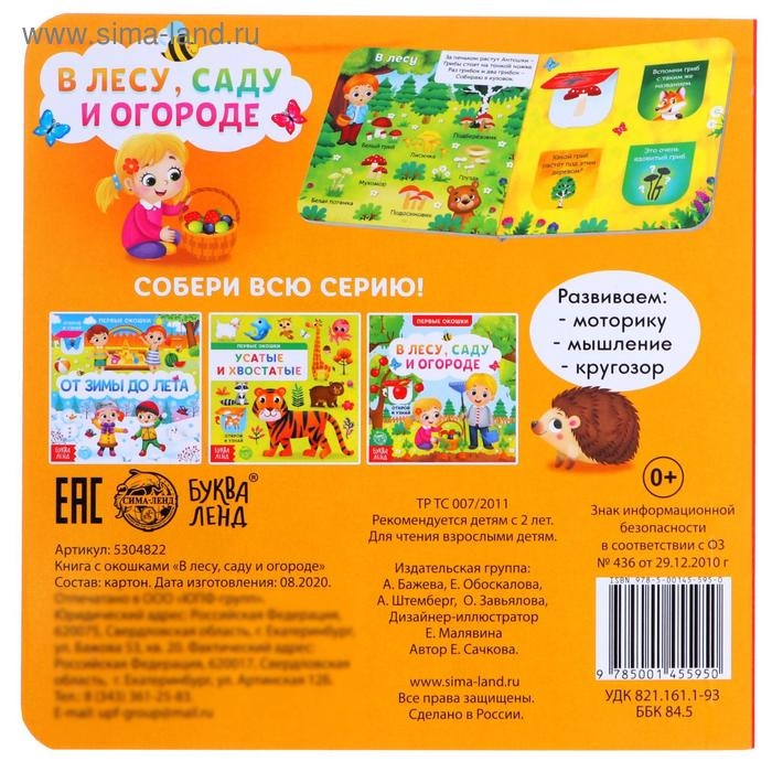 Книга картонная с окошками «В лесу, саду и огороде», 10 стр.