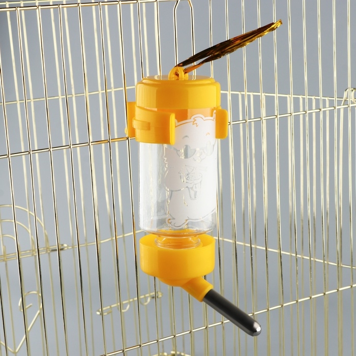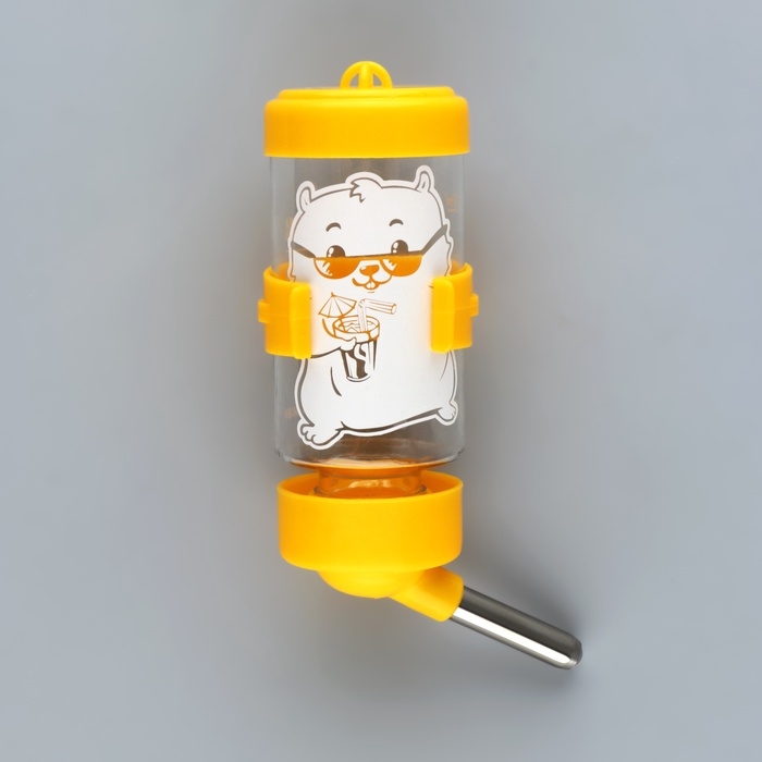 Поилка для грызунов, 60 мл, прозрачная с жёлтым креплением