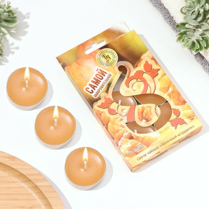 Свечи чайные ароматические, 6 штук, яблочный штрудель