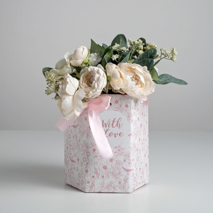Переноска для цветов складная шестигранник «With love», 17 х 14,8 х 19,5 см