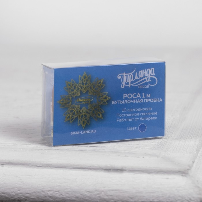 Гирлянда «Нить» 1 м роса с пробкой, IP20, серебристая нить, 10 LED, батарейки LR44х3 (в комплекте), свечение синее