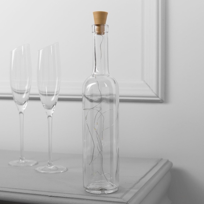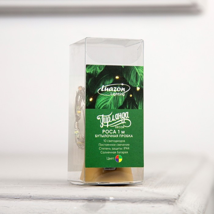 Гирлянда «Нить» 1 м роса с пробкой, IP44, серебристая нить, 10 LED, свечение мульти, солнечная батарея