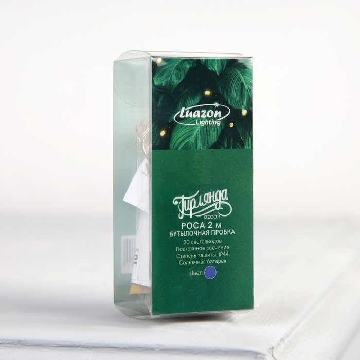 Гирлянда «Нить» 2 м роса с пробкой, IP44, серебристая нить, 20 LED, свечение фиолетовое, фиксинг, солнечная батарея