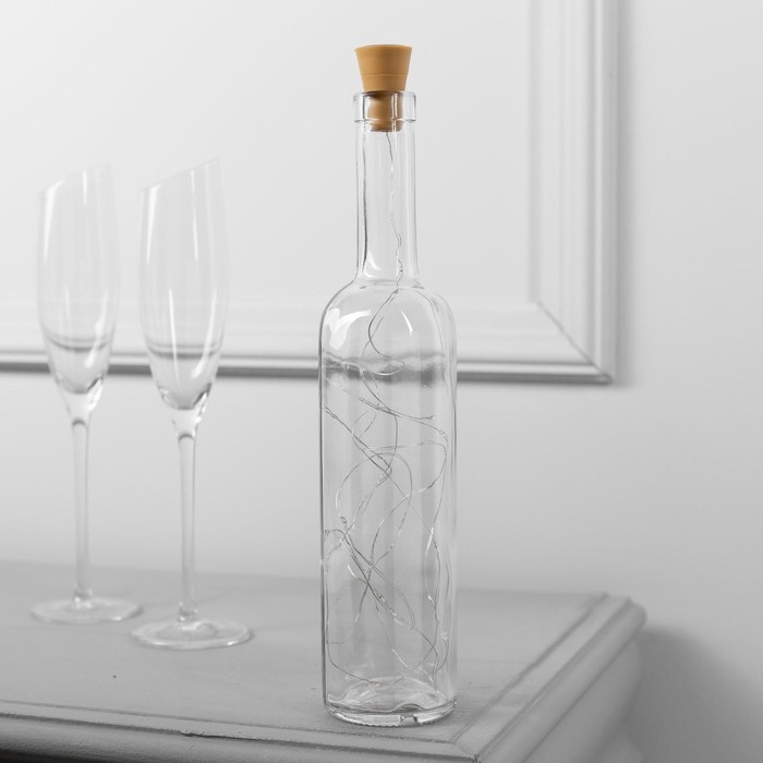 Гирлянда «Нить» 1 м роса с пробкой, IP44, серебристая нить, 10 LED, свечение мульти, солнечная батарея