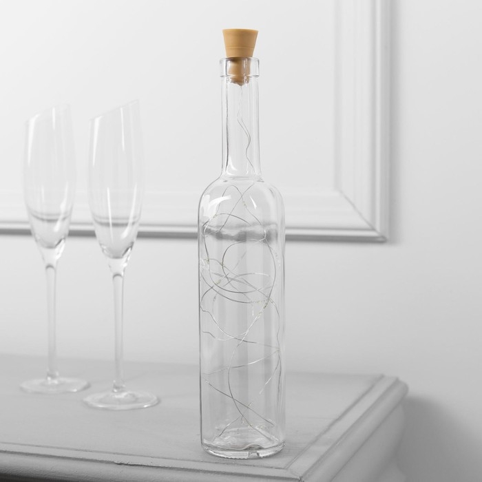 Гирлянда «Нить» 1 м роса с пробкой, IP44, серебристая нить, 10 LED, свечение мульти, солнечная батарея