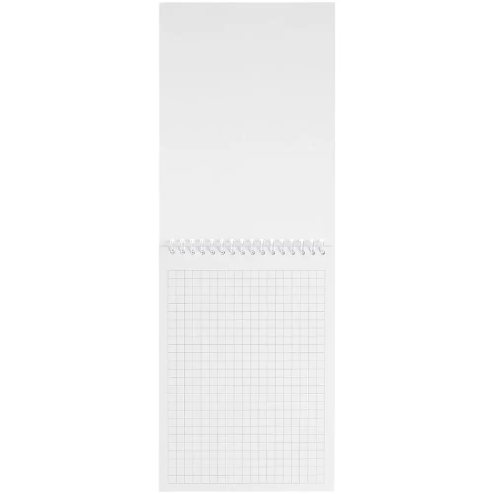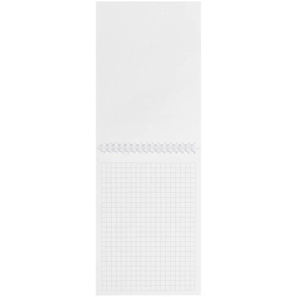 Блокнот на пружине с обложкой из белого мелованного картона плотностью 270 г/м² с покрытием софт-тач.