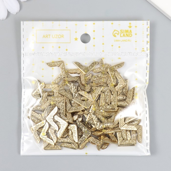 Защитный уголок для альбома металл "Завитки" набор 100 шт золото 1,4х1,4 см