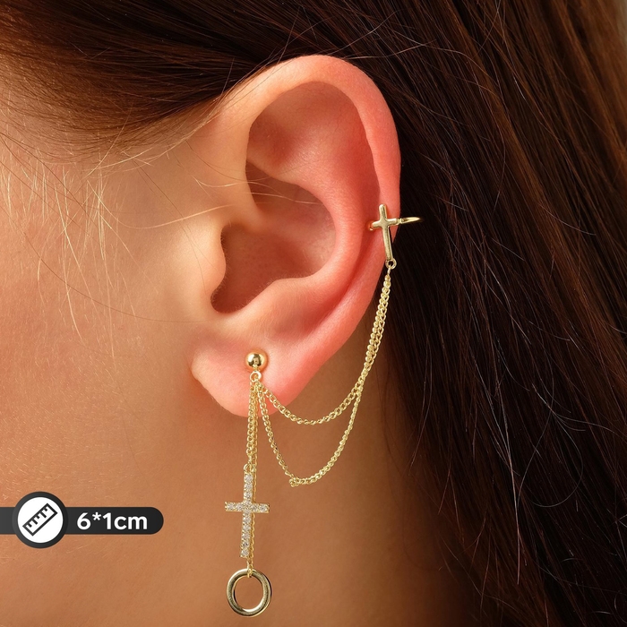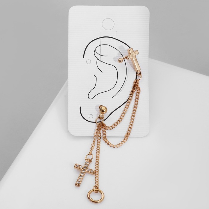 Серьга «Кафф» два креста с кругом, цвет белый в золоте