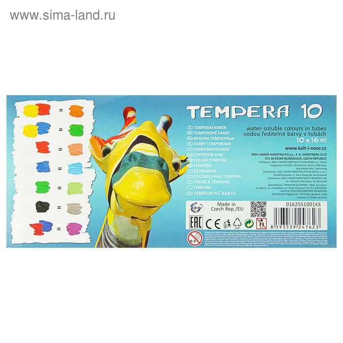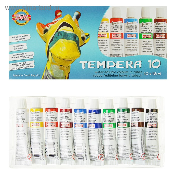 Краски темперные в тубах Koh-I-Noor, 10 цветов х 16 мл, без кисти
