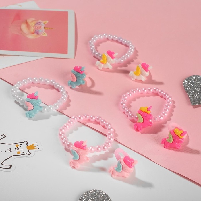 Набор детский «Выбражулька» 2 предмета: браслет, кольцо, единорог, цвет розовый