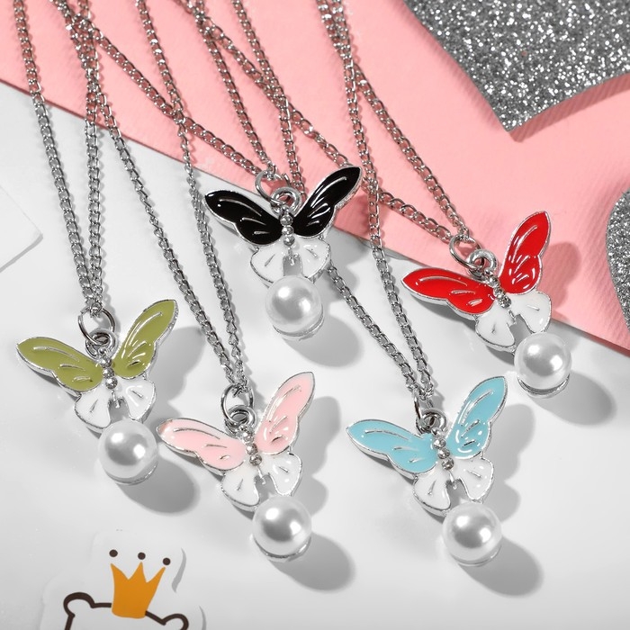 Кулон детский «Выбражулька» бабочка с бусиной, цвет МИКС, 40 см