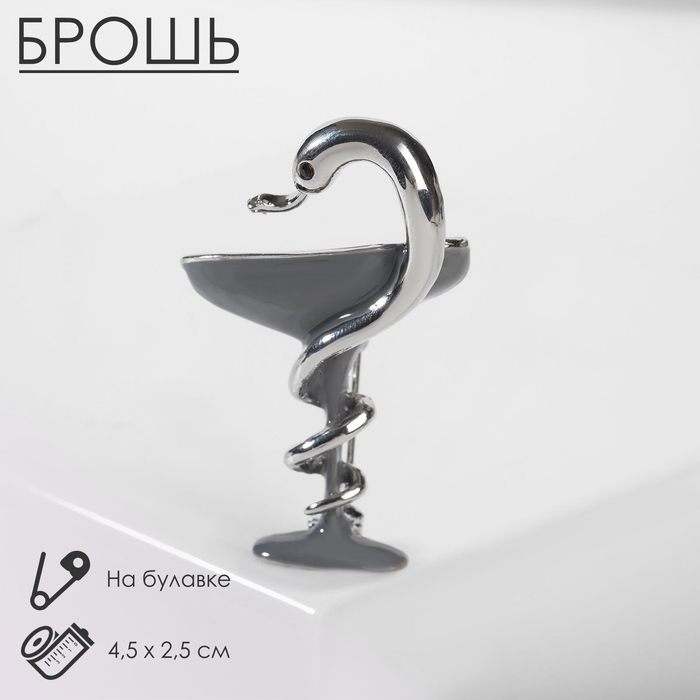Брошь «Змея в геральдике» знак медицины, цвет серый в серебре