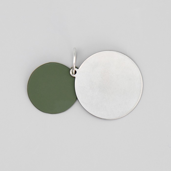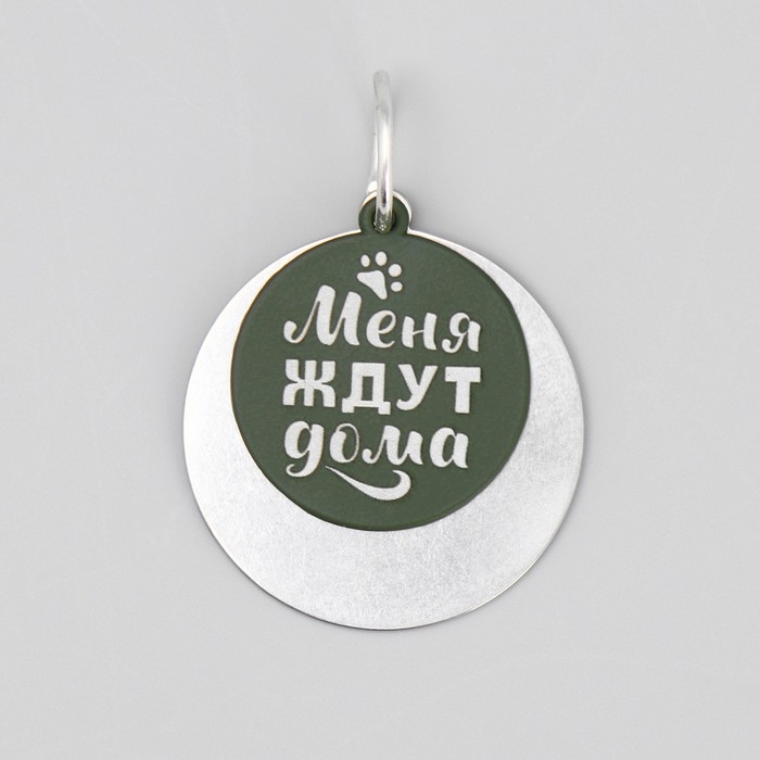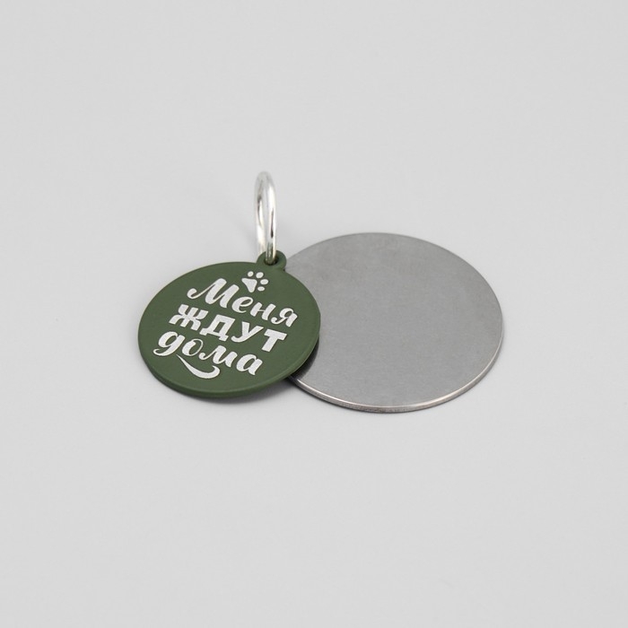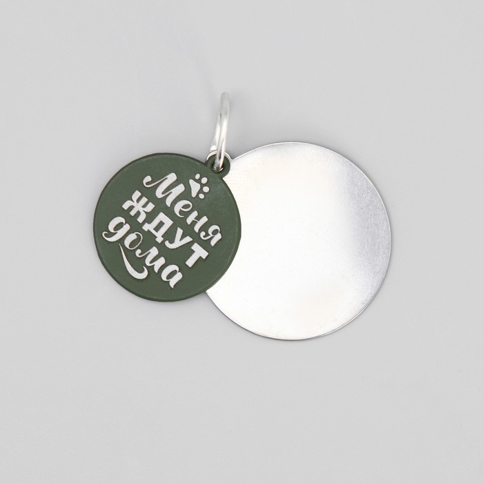 Адресник под гравировку + подвес «Меня ждут дома», верхняя часть d=2,2 см, нижняя d=3 см, цвет хаки