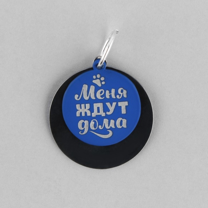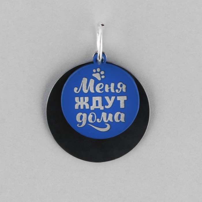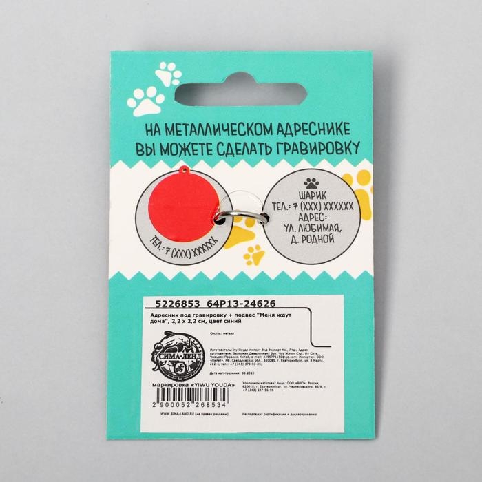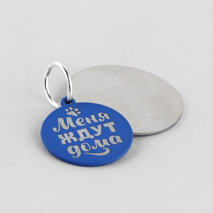 Адресник под гравировку + подвес «Меня ждут дома», верхняя часть d=2,2 см, нижняя d=3 см, цвет синий