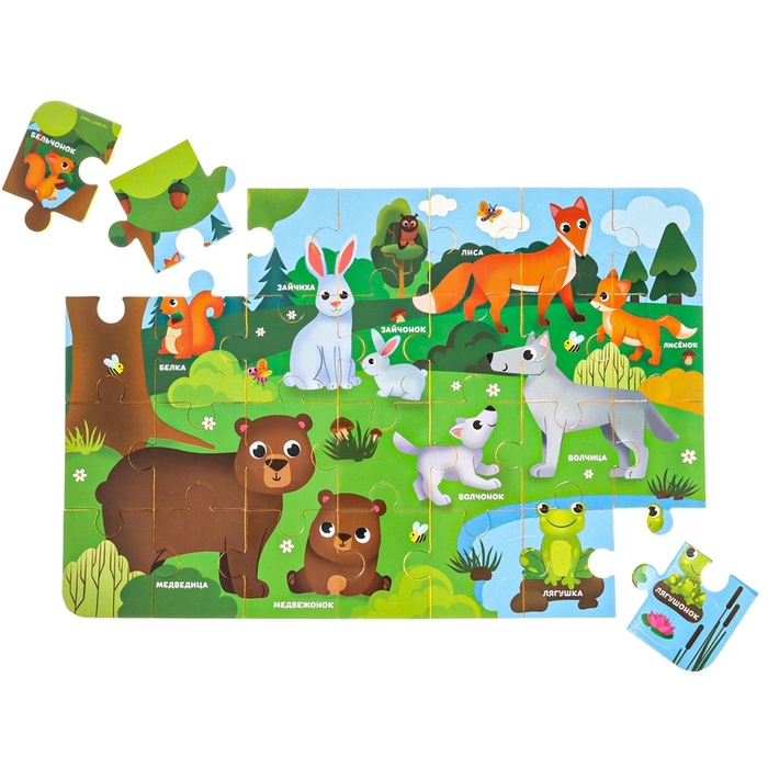 МАКСИ - пазл «Мамы и малыши», размер 50х33 см, 28 деталей, Крошка Я