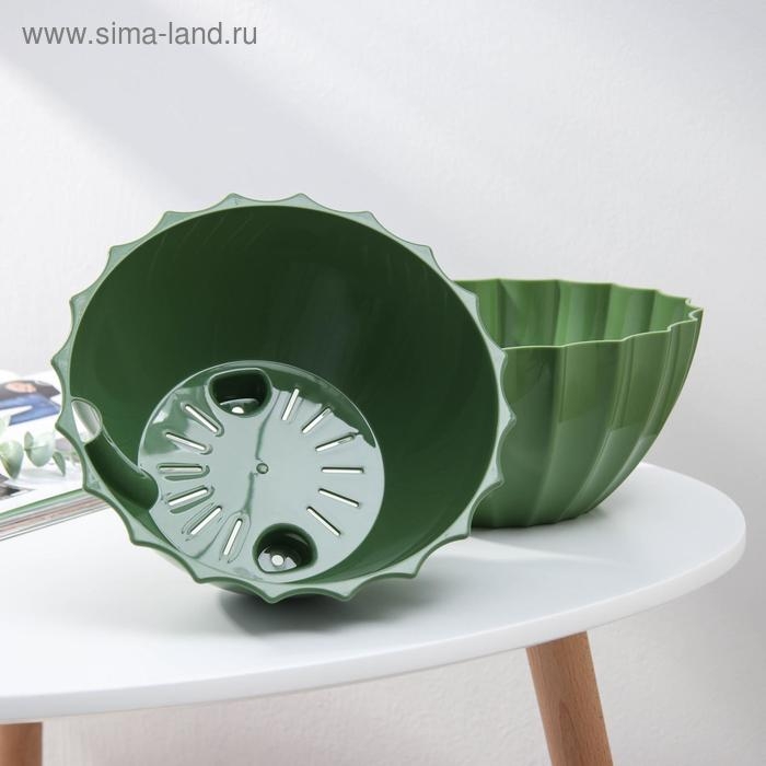 Кашпо для цветов с автополивом «Ракушка», 2,4 л, d=22см, h=10,5 см, цвет зелёный