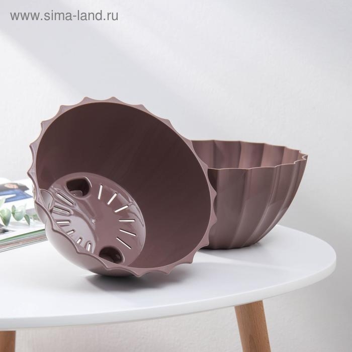 Кашпо для цветов с автополивом «Ракушка», 2,4 л, d=22см, h=10,5 см, цвет мокко