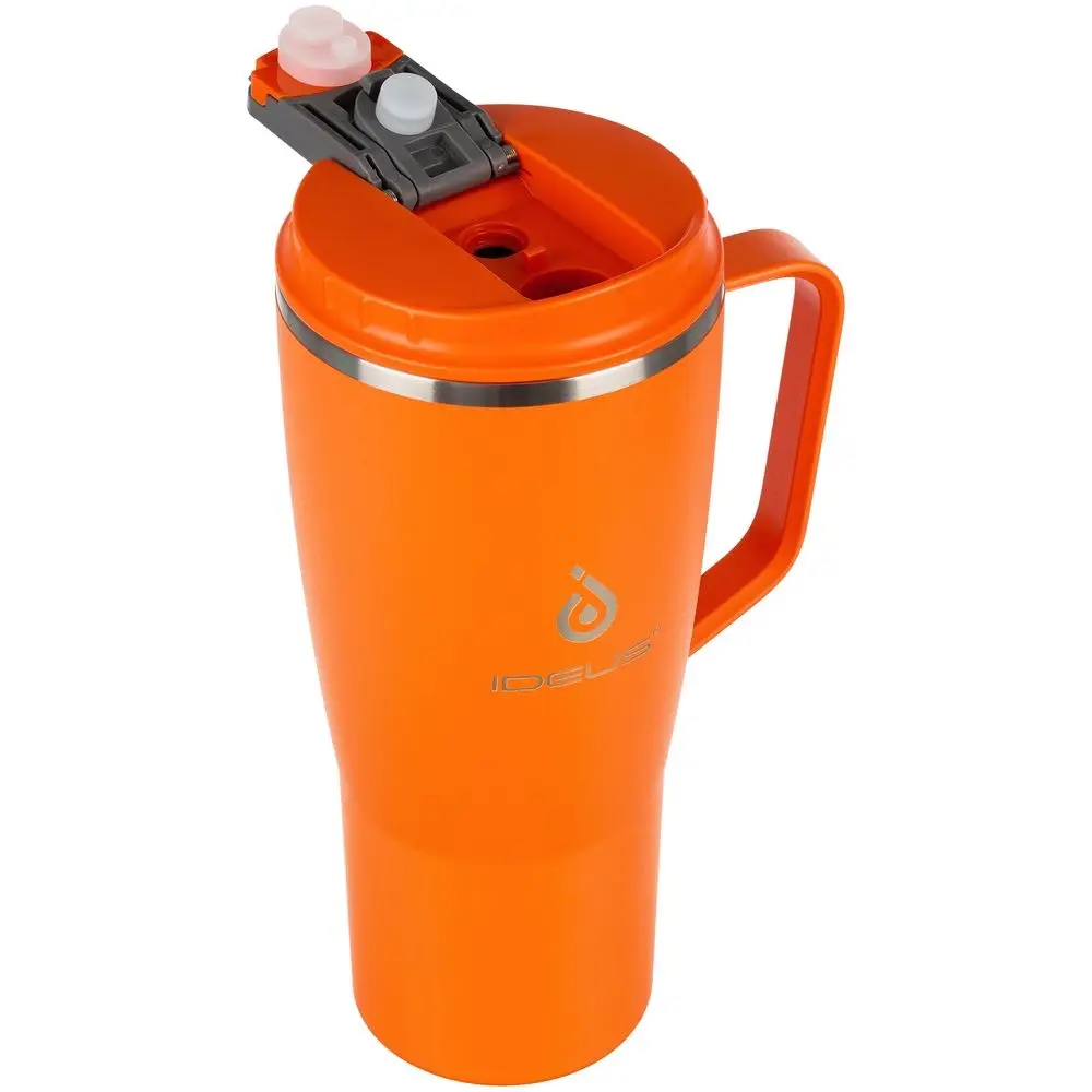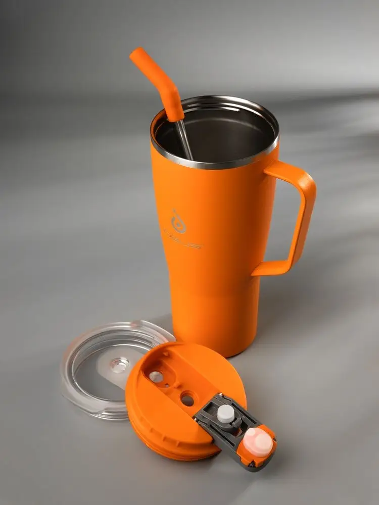 - 2 крышки в комплекте: одна на 100% герметичная с механизмом блокировки отверстия для питья, вторая — с отверстием для трубочки