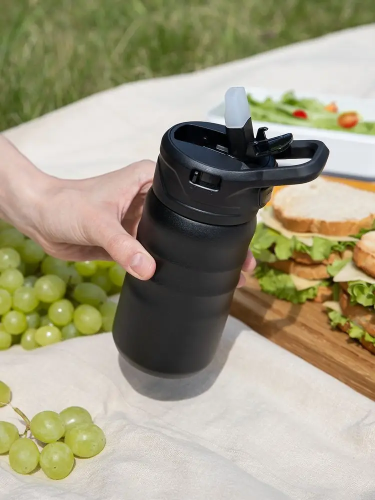 - Конструкция с двойными стенками и вакуумной изоляцией сохраняет содержимое холодным до 24 часов, горячим — до 12 часов