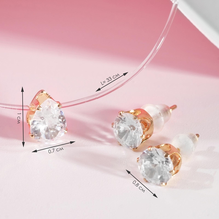 Гарнитур 2 предмета: серьги, кулон «На леске» капелька, цвет белый в золоте, 30 см