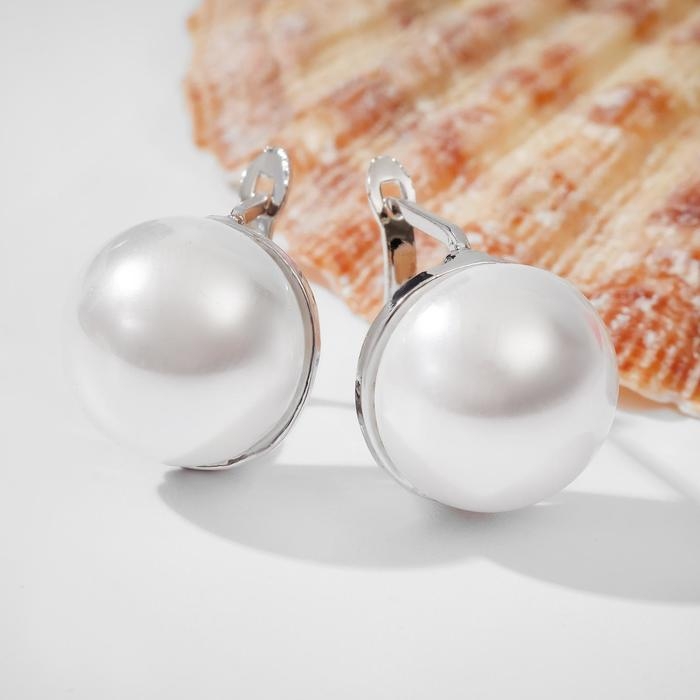 Серьги с жемчугом «Бусина» горошина, цвет серебро