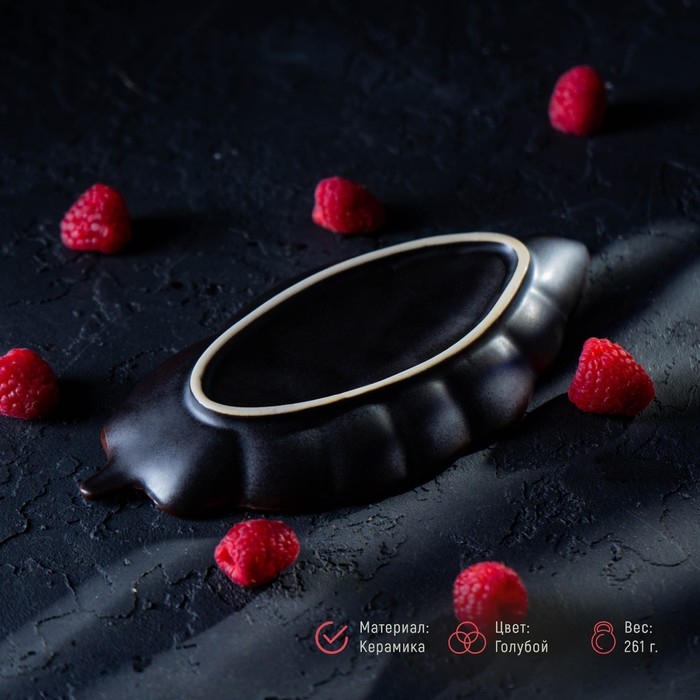 Блюдо керамическое сервировочное «Таллула. Лист», 18×9,5 см, цвет голубой