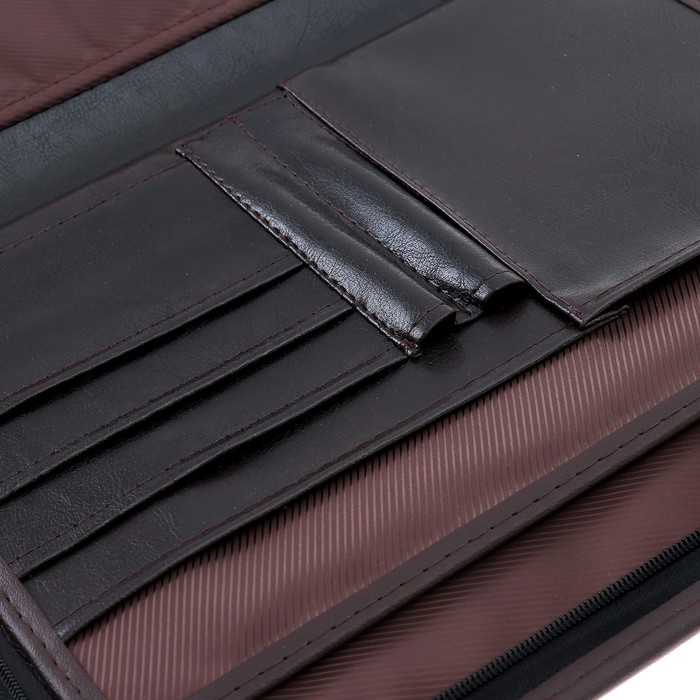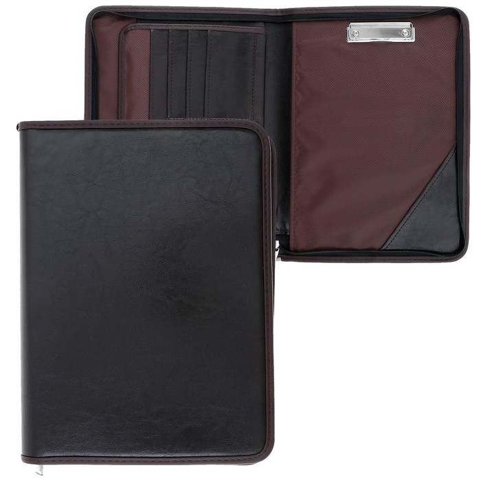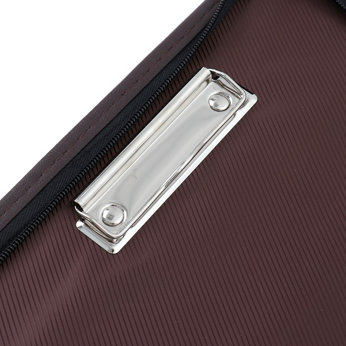 Пaпка деловая, искусственная кожа, для бумаг, 360 х 260 х 30 мм, с металлическим прижимом, 6Д07 "Люкс", коричневая