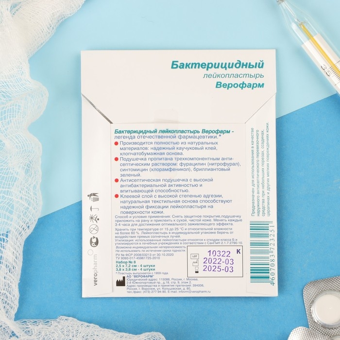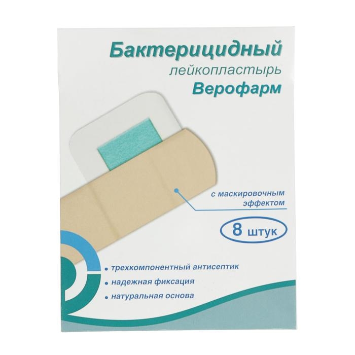 Лейкопластырь бактерицидный Верофарм набор 8 шт на тканной основе, телесные