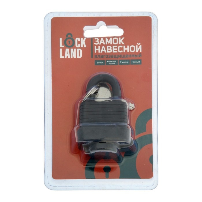 Замок навесной LOCKLAND, 30 мм, влагозащищенный, короткая дужка, 2 ключа, цвет черный