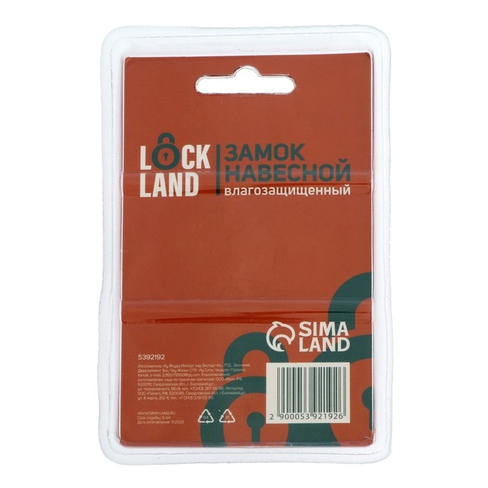 Замок навесной LOCKLAND, 40 мм, влагозащищенный, короткая дужка, 2 ключа, цвет черный