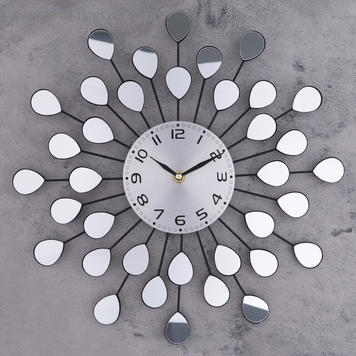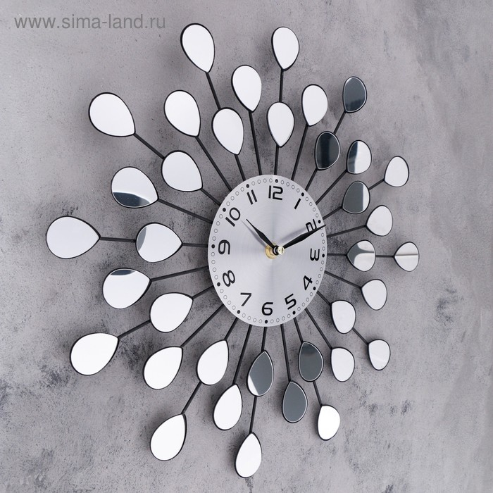 Часы настенные, серия:Ажур, "Зеркальные лепестки", плавный ход, d-10 см, 40 х 40 см