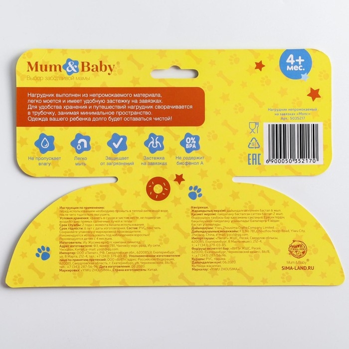 Нагрудник не промокает и качественно защищает, поэтому одежда малыша не испачкается в процессе кормления.