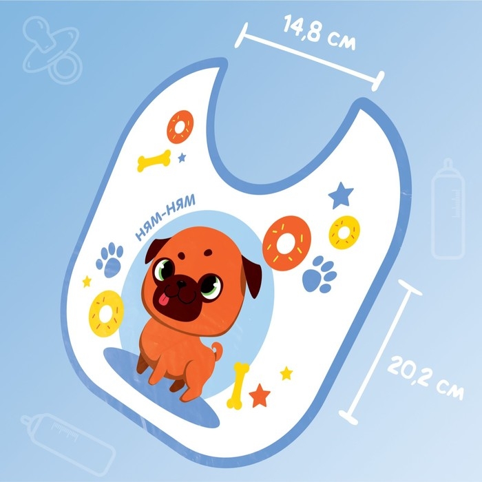 Нагрудник для кормления «ТРЕНД. Мопс» непромокаемый на завязках