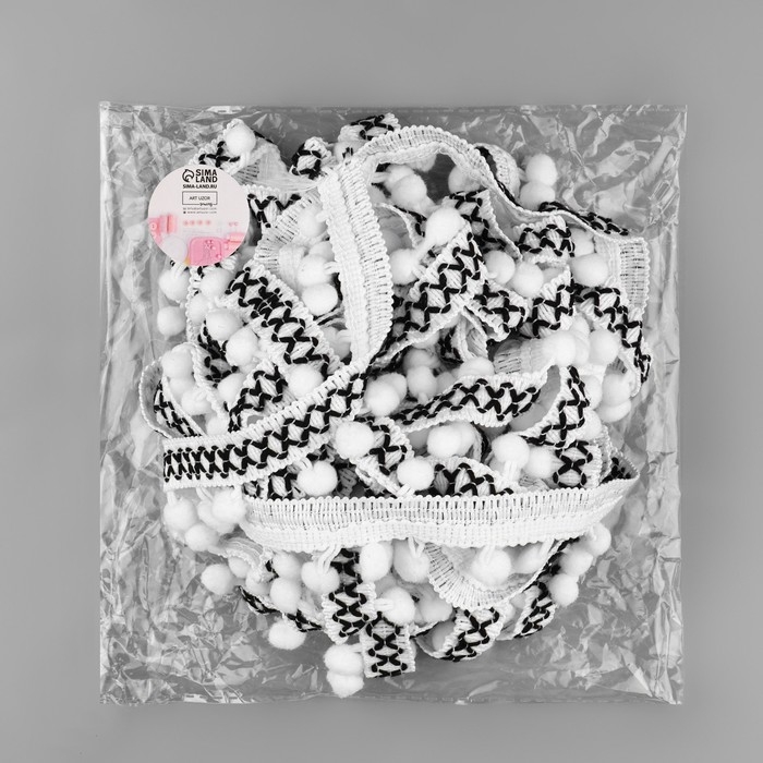 Тесьма декоративная с помпонами, 15 мм, 8 ± 0,5 м, цвет белый